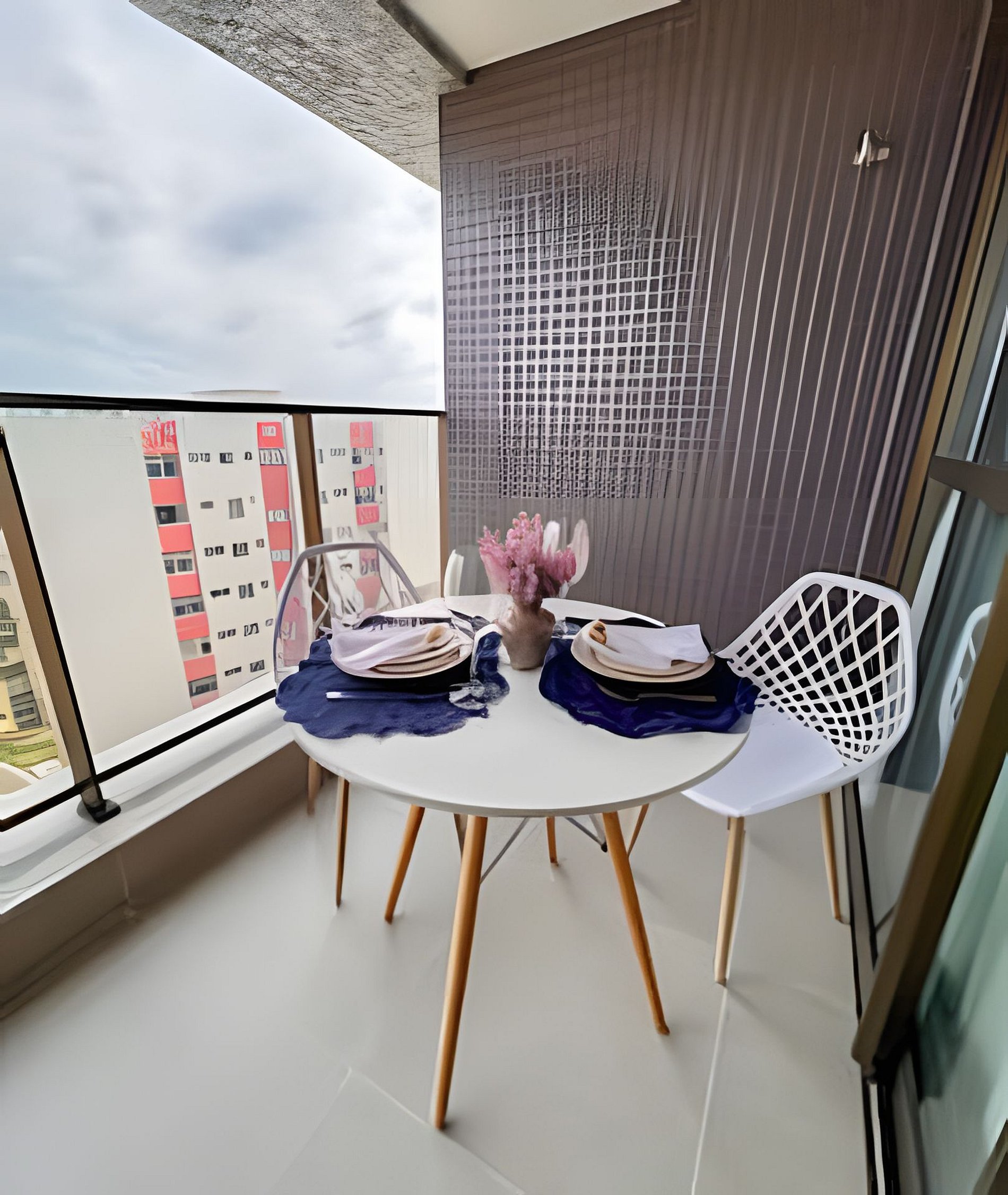 Varanda: Varanda privativa, mesa e 2 cadeiras, com vista para o mar.