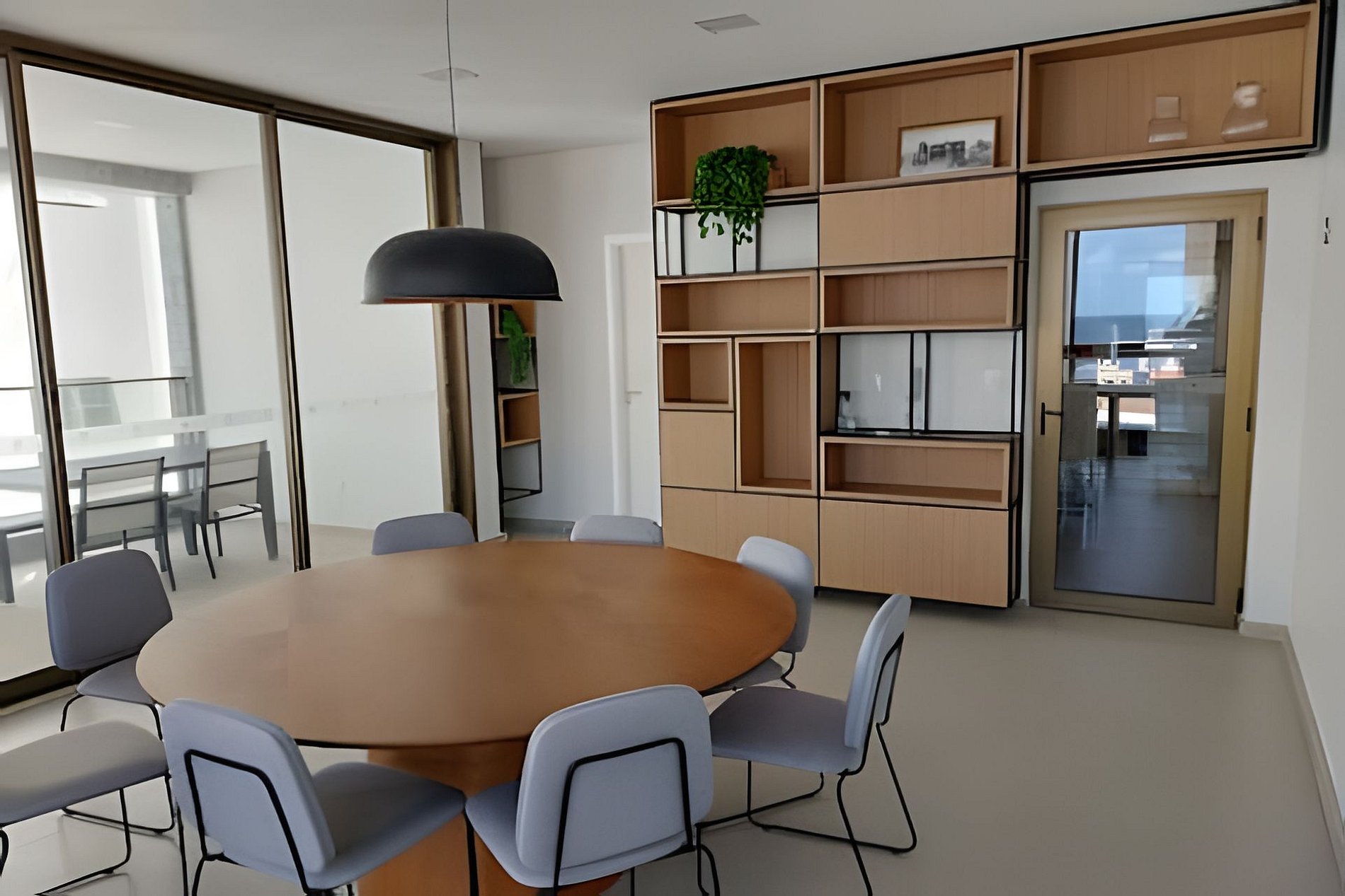 Sala de Reuniões Privativa: Disponível para reserva antecipada (R$ 160/h, capacidade para 8 pessoas).