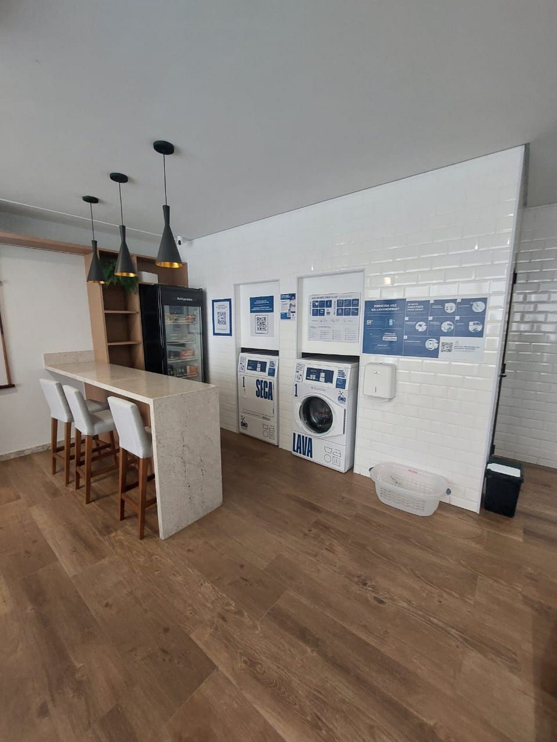 Lavanderia: Em implantação (previsão dez/2025); opções próximas a 150m.